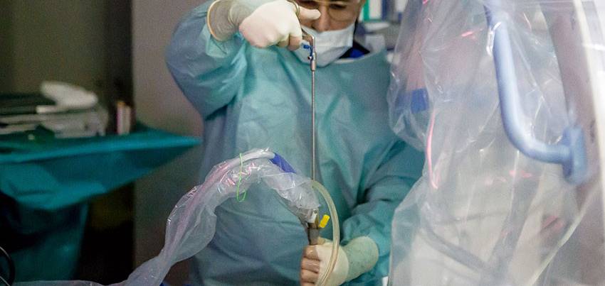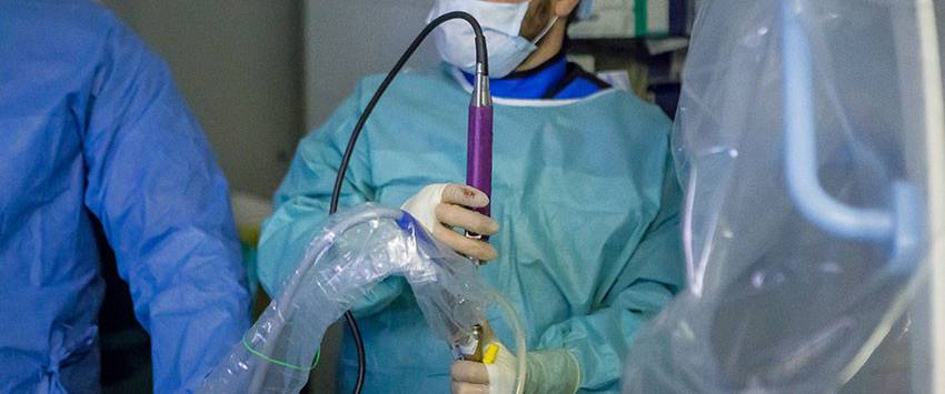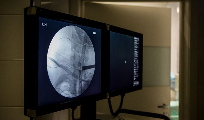 2. Хирург контролирует введение инструментов при помощи рентгена.