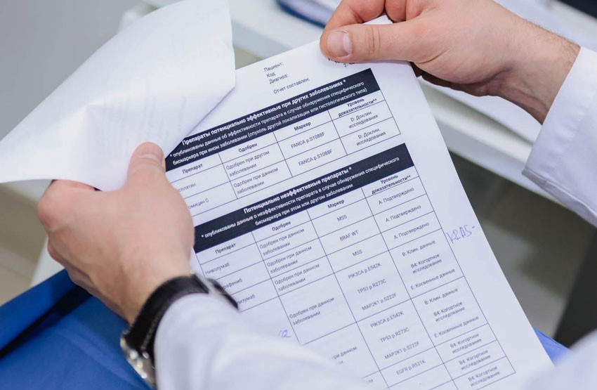 Отчет о генетическом исследовании содержит информацию, которая позволяет онкологу выстроить наиболее эффективную программу лечения для конкретного пациента.